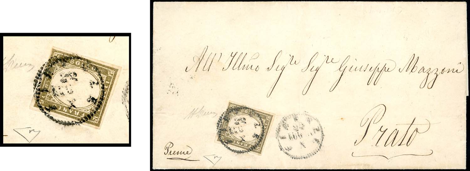 1861 - 10 cent. grigio bistro chiaro, EFFIGIE CAPOVOLTA (14Cc), ottimo stato, su lettera da Firenze 22/7/1861 a Prato. Rarissima e molto fresca! Diena, cert. E.Diena.