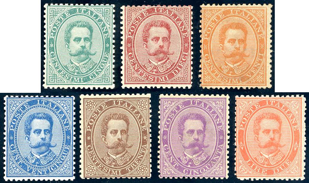 Lotto 494 - 1879 - Umberto I, prima emissione completa (37/43), nuovi, ...