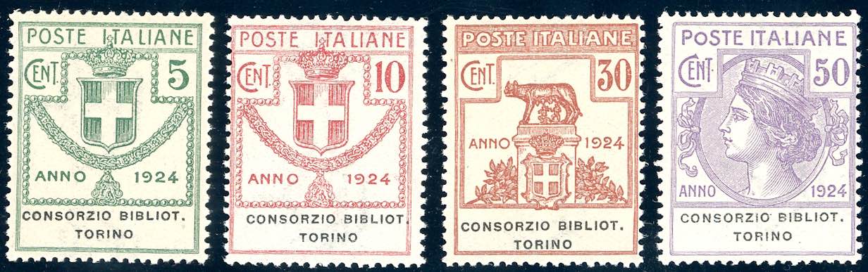 CONSORZIO BIBLIOT.TORINO 1924 - Serie completa (30/33), gomma originale integra, perfetti. Ferrario.
