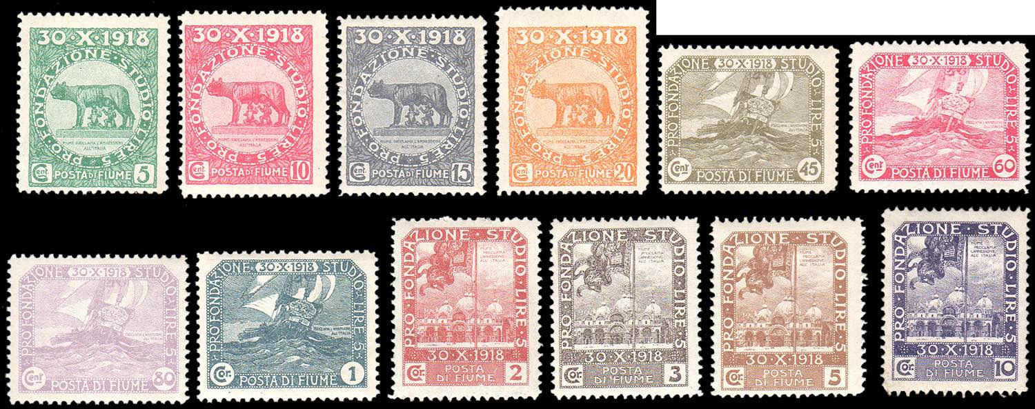 FIUME 1919 - Plebiscito, serie completa (62/73), nuovi, gomma originale integra, perfetti. Ottima qualità.