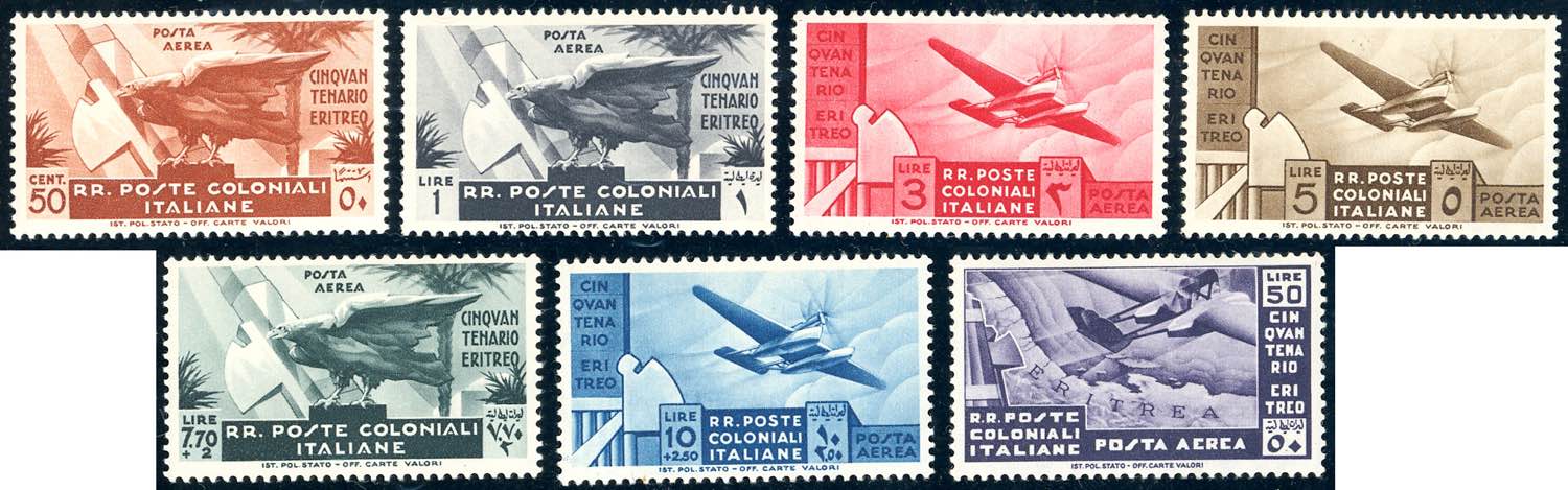 Lotto 1075 - POSTA AEREA 1933 - Cinquantenario Eritreo (15/21), gomma ...