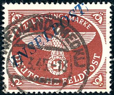 OCCUPAZIONE TEDESCA EGEO 1945 - Inselpost bruno rosso dent. 13 3/4, soprastampa di Agram fortemente spostata in alto (6ef), perfetto, usato il 19/3/1945. Cert. Avanzo e Sorani.