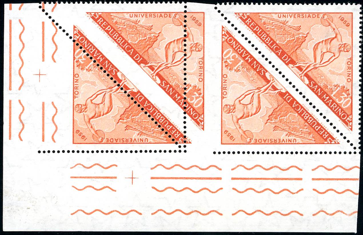 1859 - 30 lire Università di Torino, striscia di quattro, la coppia centrale con le dentellature fortemente spostate e con l'esemplare ... Leggi tutto