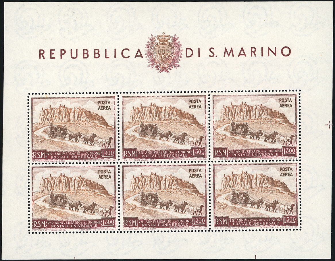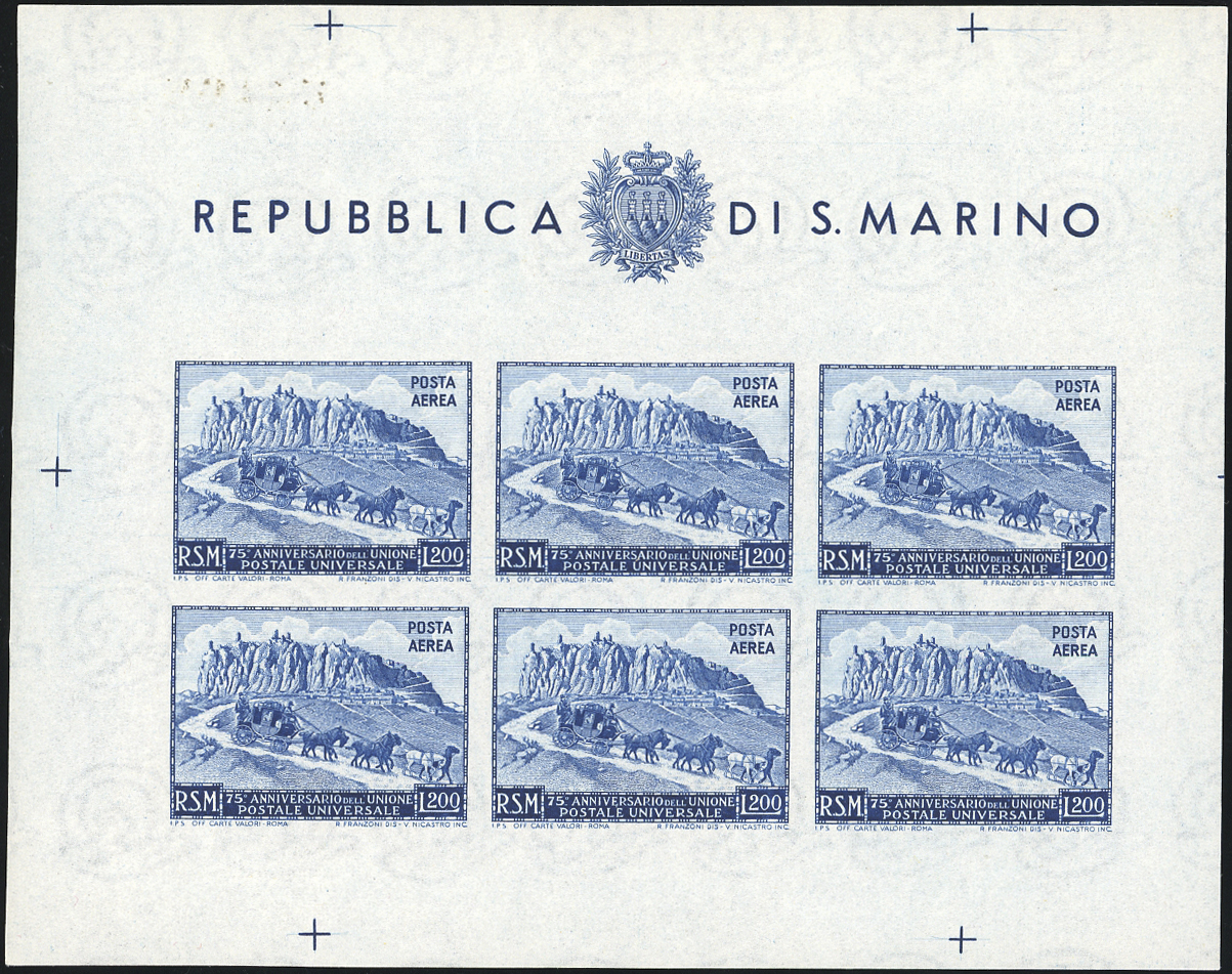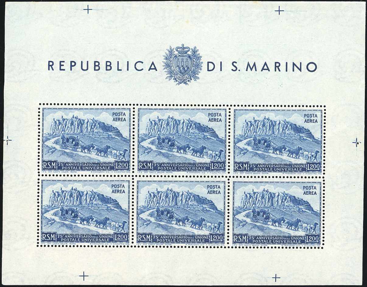 1949/51 - UPU, i quattro foglietti (8/11), gomma originale integra, perfetti. Ottima qualità. Ferrario, cert. Bolaffi per il n. 8.
