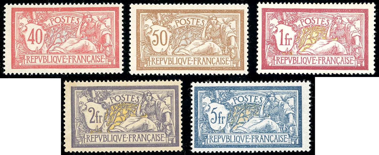 FRANCIA 1900 - Merson, serie completa di cinque valori (119/123), nuovi, gomma originale integra, perfetti. Molto freschi, bellissimi. Il 2 ... Leggi tutto