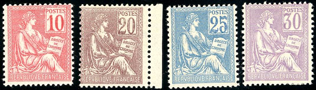 FRANCIA 1900 - Mouchon, I tipo, serie completa di quattro valori (112/115), nuovi, gomma originale integra, perfetti.
