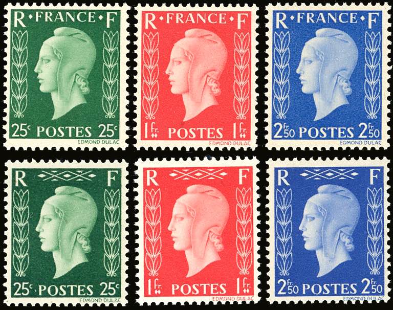 FRANCIA 1945 - Marianna di Dulac, non emessi (701A/701F), serie completa, nuovi, gomma originale integra, perfetti. Molto belli.