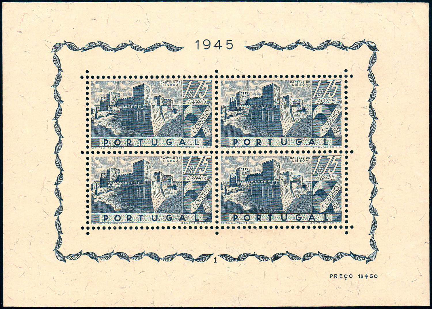 Lotto 1549 - PORTOGALLO FOGLIETTI 1945 - 1,75 e. Castelli, foglietto ...