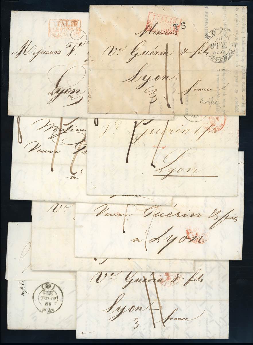 PREFILATELICHE 1835/1850 - Otto lettere prefilateliche da Roma alla Francia, tutte di ottima qualità.
