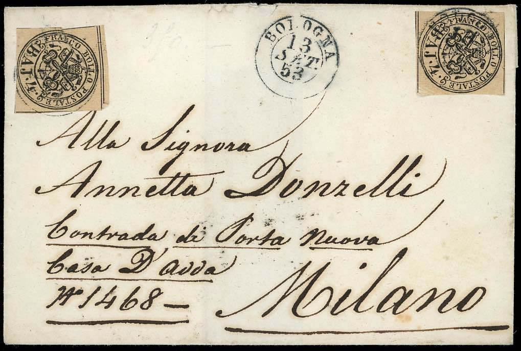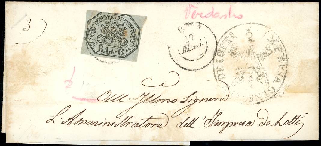 Lotto 1612 - STATO PONTIFICIO 1852/1867 - Quattordici lettere e un ...