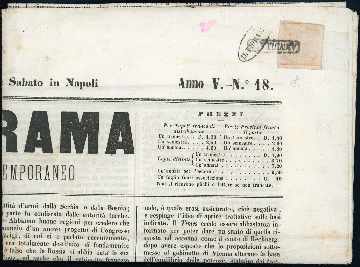 ANTICHI STATI 1858/1863 - Otto lettere e un giornale affrancati con francobolli del periodo. Notato 1/2 grano, I tavola di Napoli isolato ... Leggi tutto