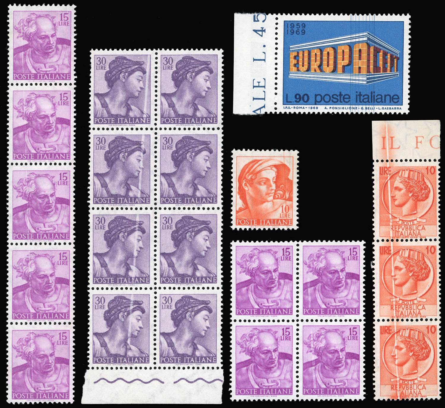 REPUBBLICA ITALIANA 1960/61 - Bell'insieme di sedici esemplari con varietà "taglio chirurgico", gomma integra, perfetti.
