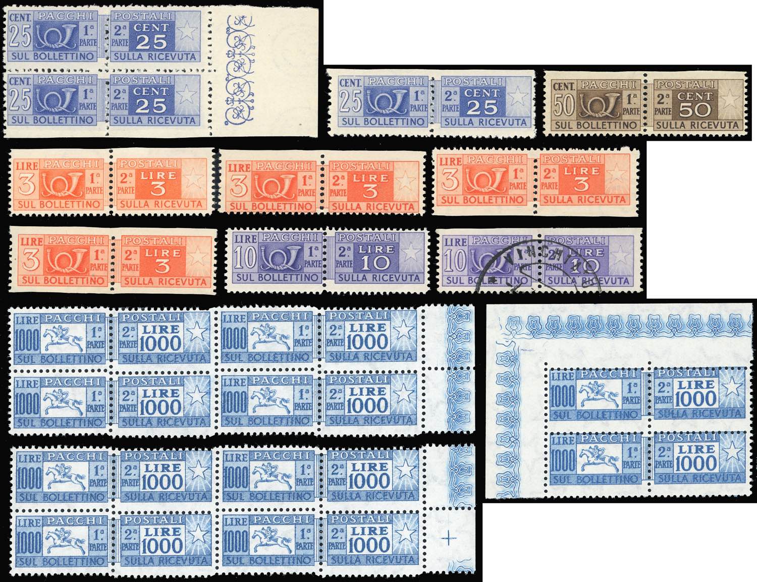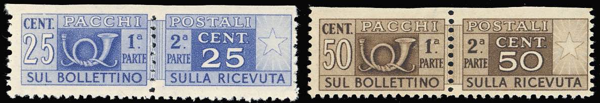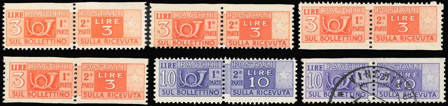 REPUBBLICA ITALIANA PACCHI POSTALI 1946/57 - Piccolo insieme di francobolli del periodo con interessanti varietà.