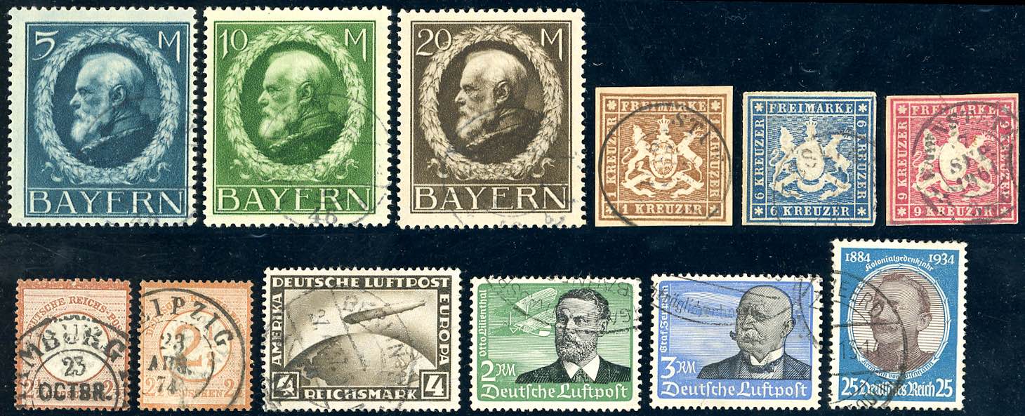 ANTICHI STATI TEDESCHI/GERMANIA 1845/1950 - Piccolo insieme di francobolli usati del periodo con esemplari di pregio. Qualità generalmente ottima.