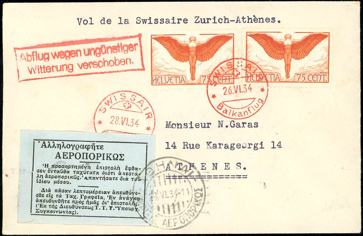Lotto 1751 - SVIZZERA POSTA AEREA 1932/1934 - Tre aerogrammi affrancati ...