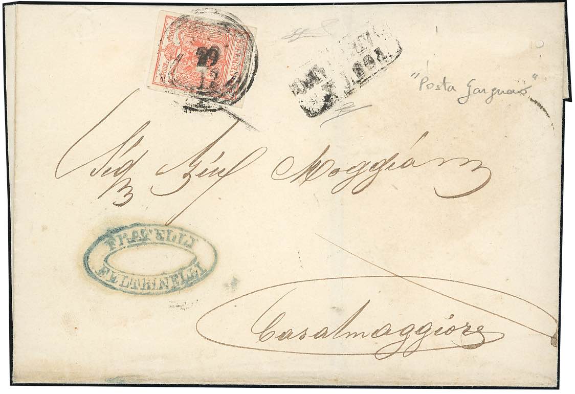 GARGNANO C4 + POSTA GARGNANO R.S.D. punti 13 - 15 cent. (6), ben marginato, piccola abrasione sul fronte precedente all'applicazione, su ... Leggi tutto
