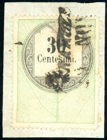 PERAROLO, SI Ig. punti 9 - 30 cent., marca da bollo (4), ottimo stato, usata su frammento. Ferrario.