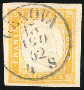 Lotto 690 - 1862 - 80 cent. giallo (17Da), perfetto, usato a Genova. ...