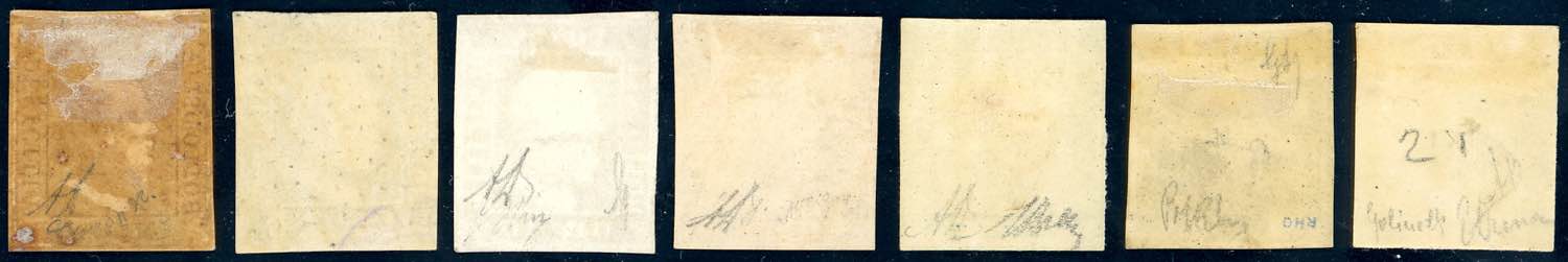 1859 - L'emissione completa nelle tavole più comuni (1,5,6,11,12,13,14), nuovi, gomma originale, perfetti. Il 10 grana senza gomma. Ottima qualità. Tutti firmati da noti periti, la serie cert. Ferrario.