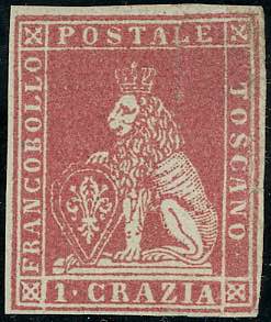 Lotto 819 - 1851 - 1 crazia carminio chiaro su grigio (4), gomma ...