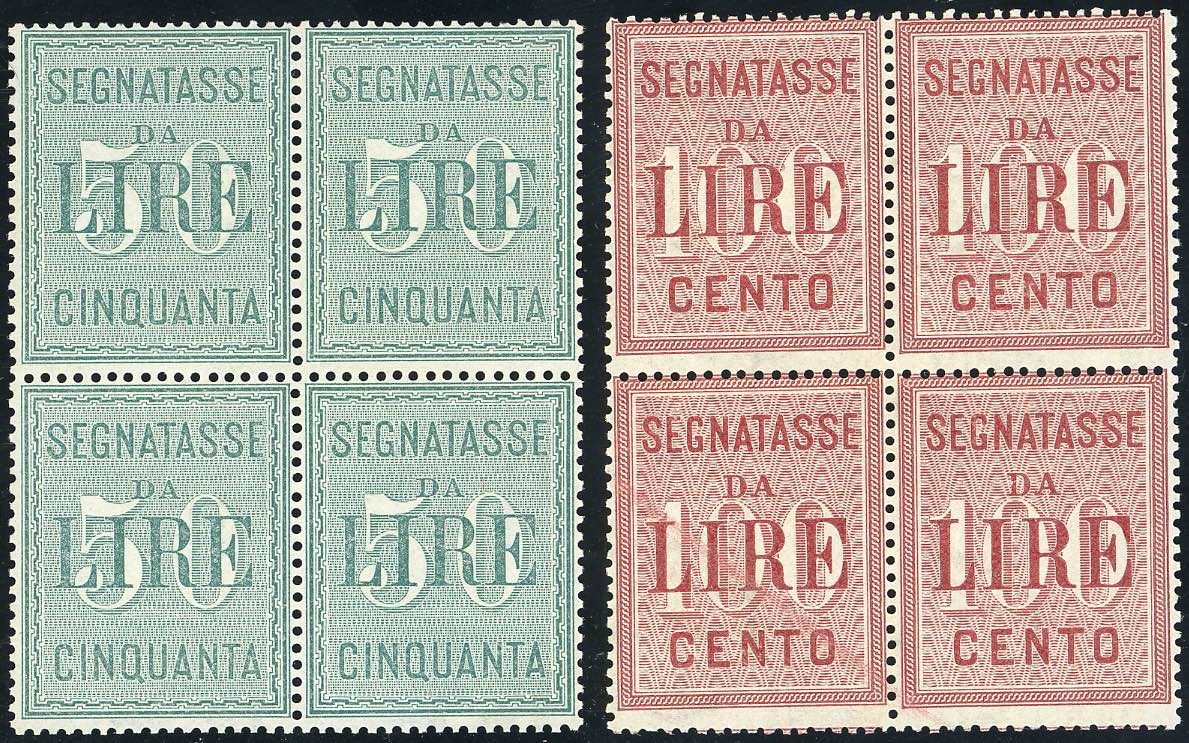 Lotto 1367 - 1884 - 50 e 100 lire (15/16), blocchi di quattro, gomma ...