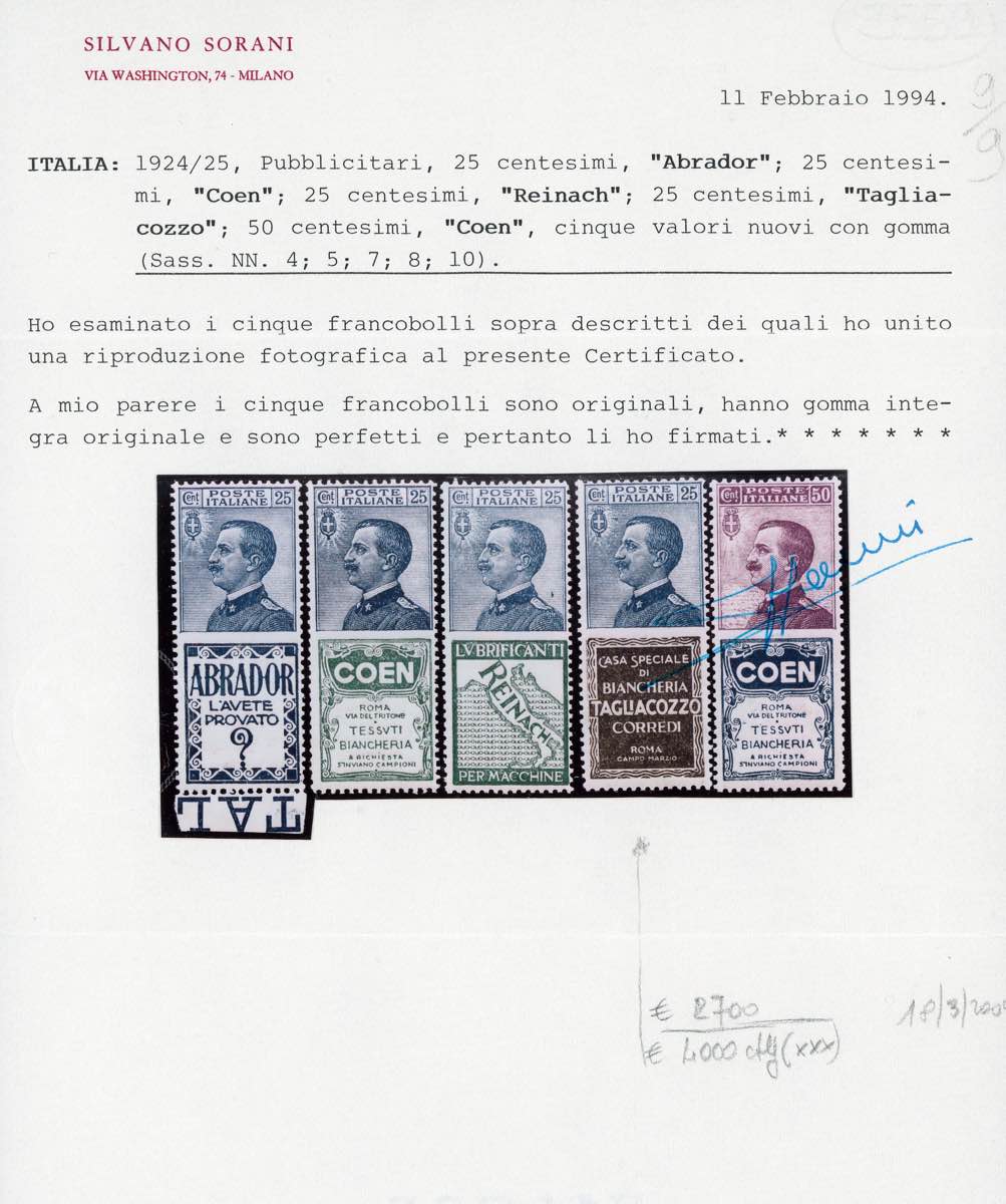 Lotto 1422 - 1924 - 25 cent. Tagliacozzo (8), nuovo, gomma originale ...