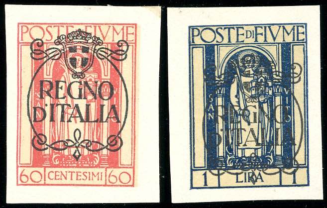 FIUME 1924 - 60 cent. e 1 lira soprastampati "Regno d'Italia", non dentellati (209l,210l), gomma originale, perfetti.