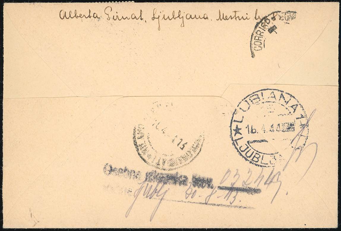 OCCUPAZIONE TEDESCA LUBIANA 1944 - 50 cent. soprastampato (8), sei esemplari, perfetti, su busta raccomandata per espresso, senza i lembi ... Leggi tutto