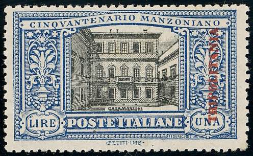 1924 - 1 lira Manzoni, saggio (P5), gomma integra, perfetto. Sorani, Raybaudi.