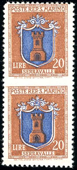 Lotto 2498 - 1946 - 20 lire Stemmi, coppia verticale non dentellata al ...
