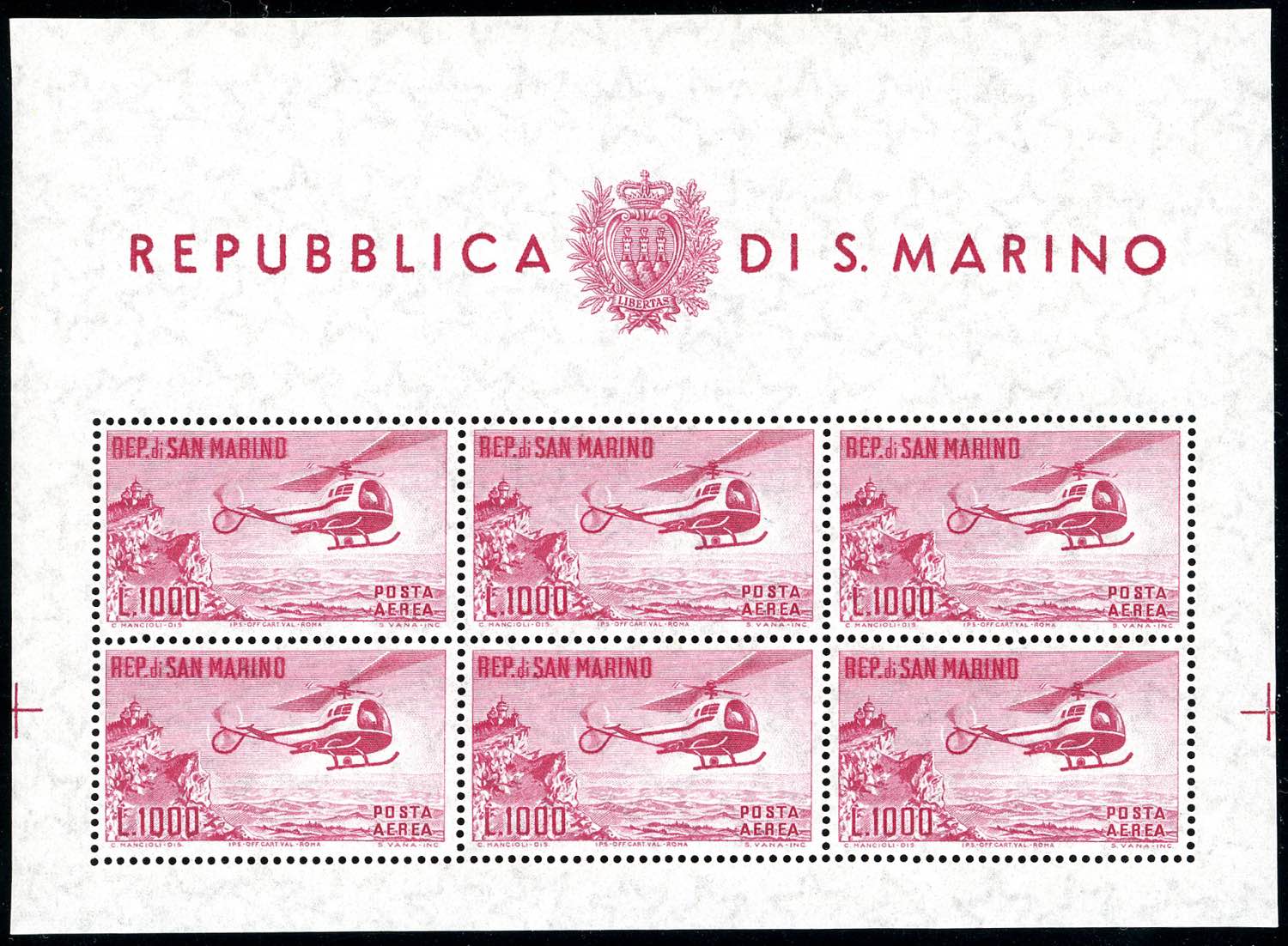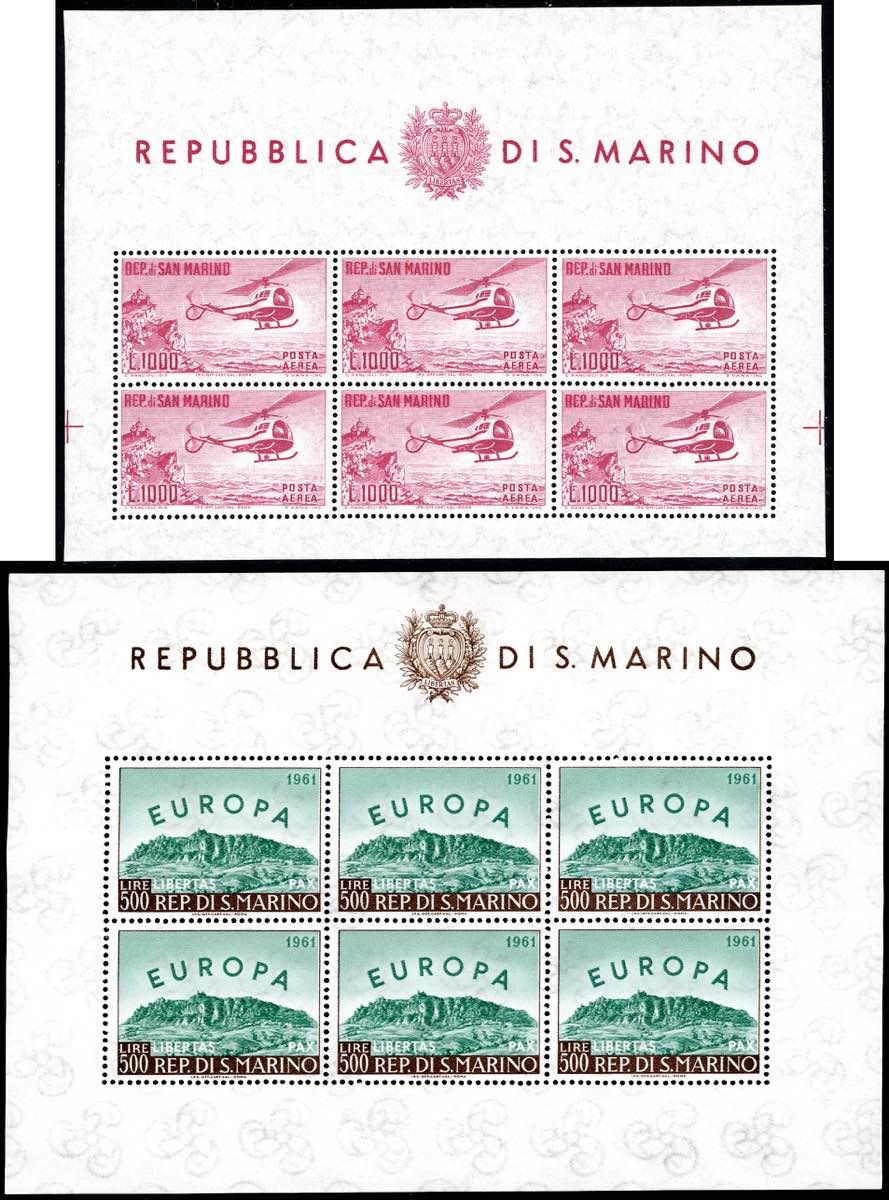 Lotto 2680 - 1961 - Elicottero e Europa, foglietti (22,23), gomma ...