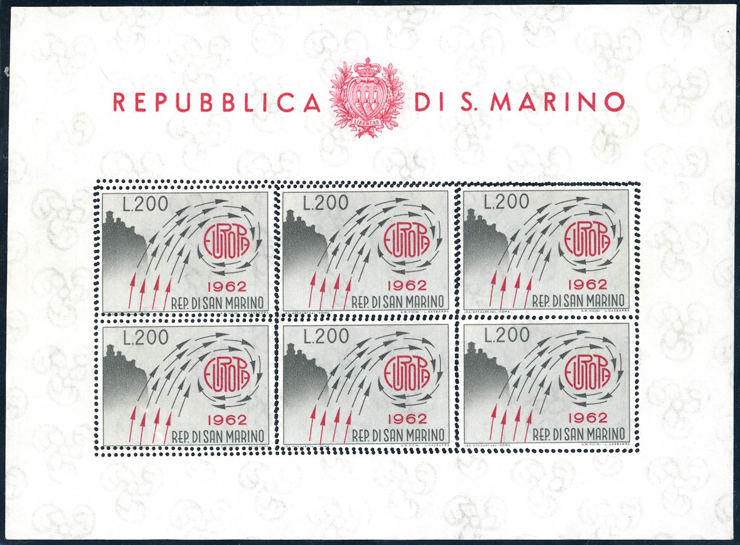 1962 - 200 lire Europa, doppia dentellatura (24a), gomma originale integra, perfetto, dentellatura leggermente aperta di una coppia. UNICO ... Leggi tutto