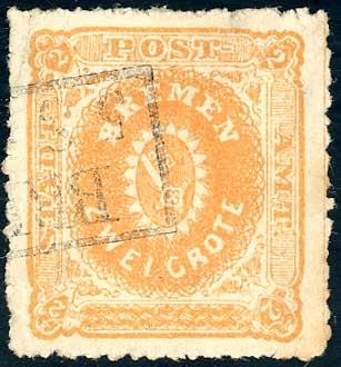 GERMANIA BREMA 1861 - 2 g. arancio perforato ad arco (5), usato, riparato.