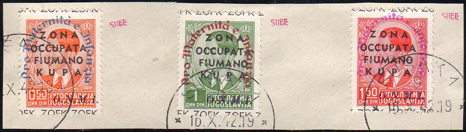 Lotto 2423 - ZONA FIUMANO KUPA 1942 - O.M.N.I. colori della soprastampa ...