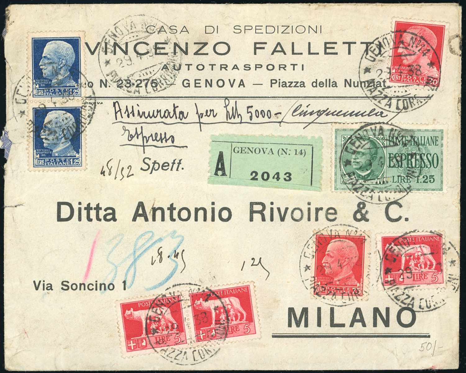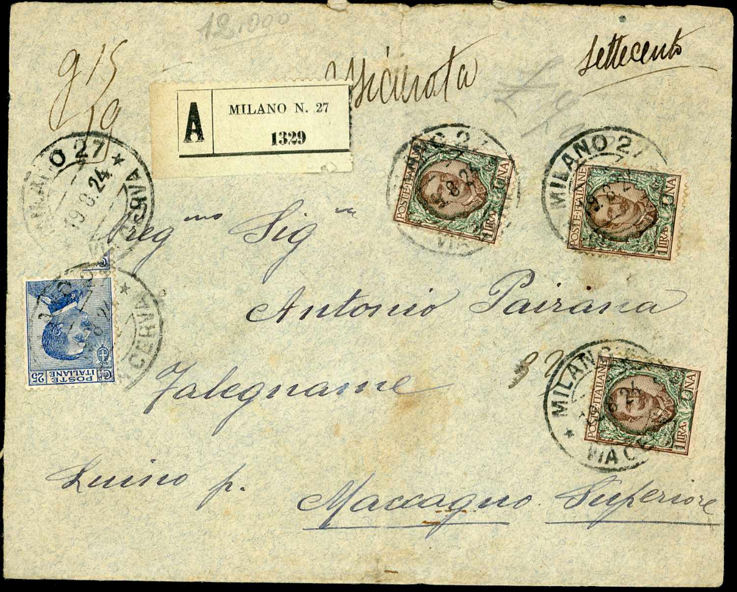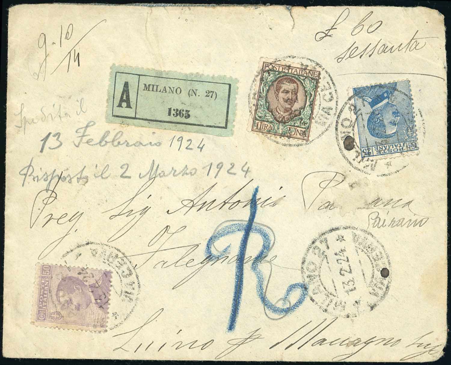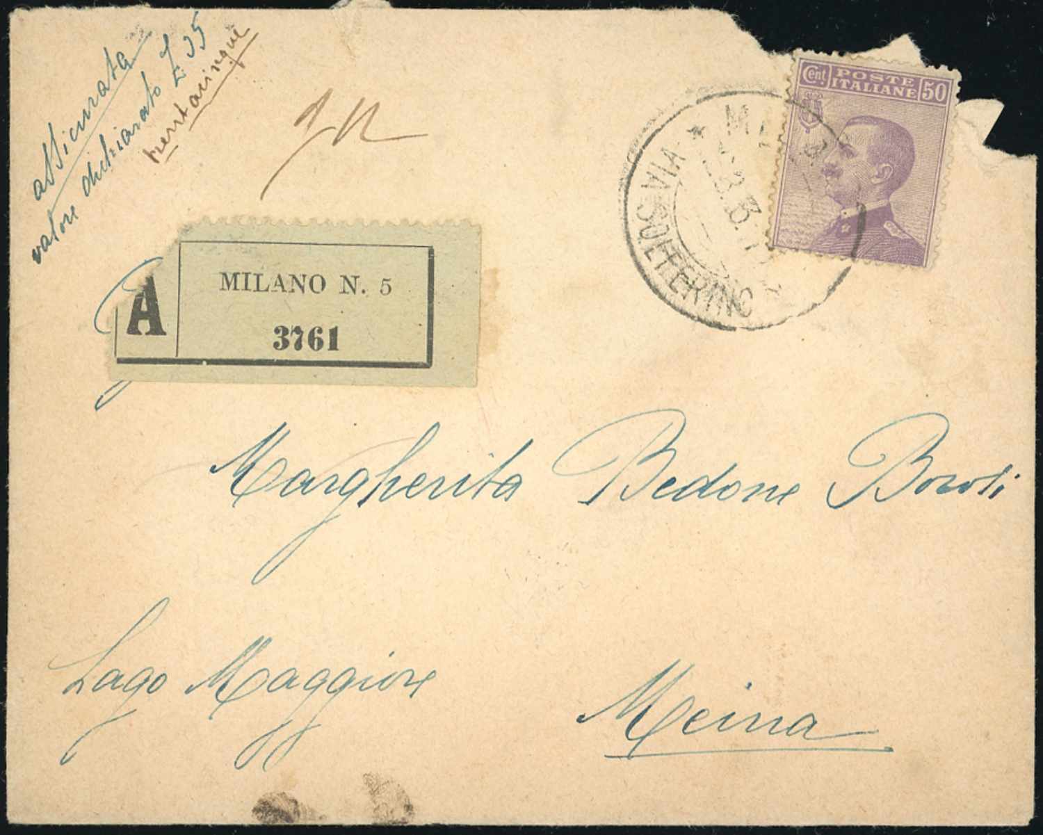 Lotto 3055 - REGNO D'ITALIA ASSICURATE 1911/1932 - Sette buste ed un ...
