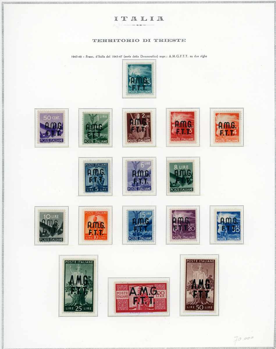 TRIESTE A AMG-FTT 1947/1954 - Collezione praticamente completa di francobolli e servizi del periodo (mancano solo i segnatasse n.5/15), ... Leggi tutto