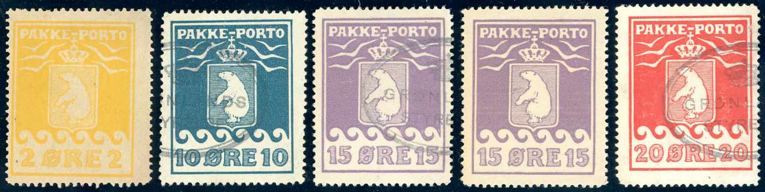 GROENLANDIA PACCHI POSTALI 1916 - Orsi polari, cinque esemplari dell'emissione, nuovi o usati.