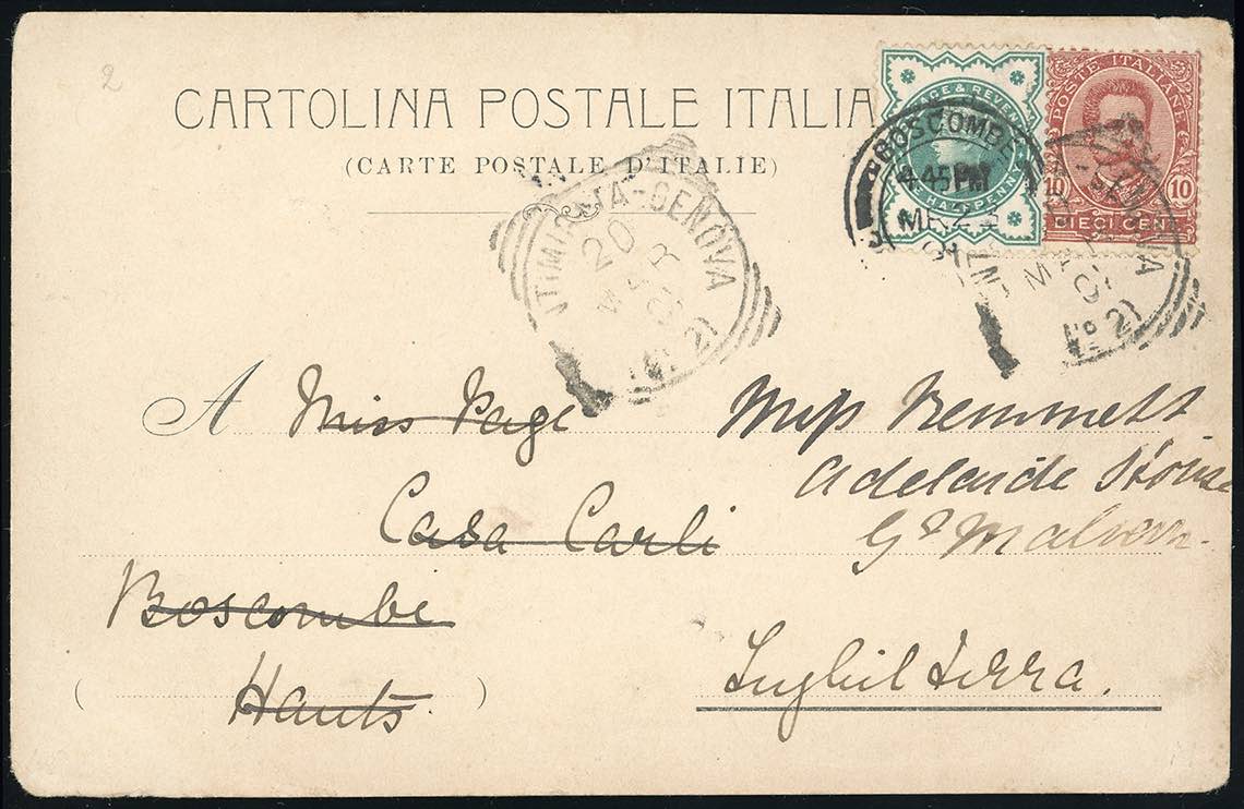 1901 - ITALY/GREAT BRITAIN - Redirected with additional franking.