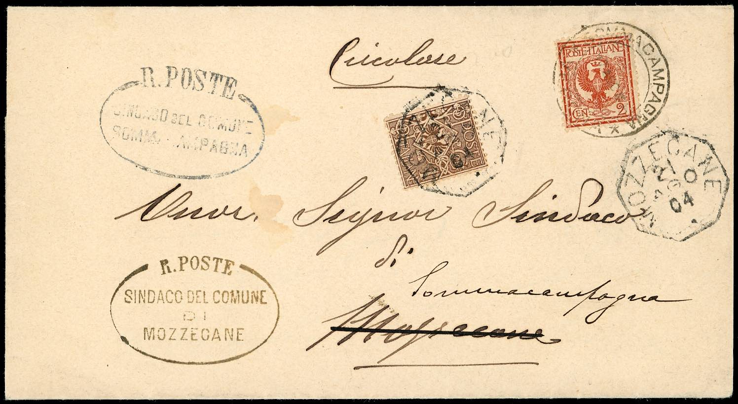 1904 - ITALY - Redirected with additional franking.