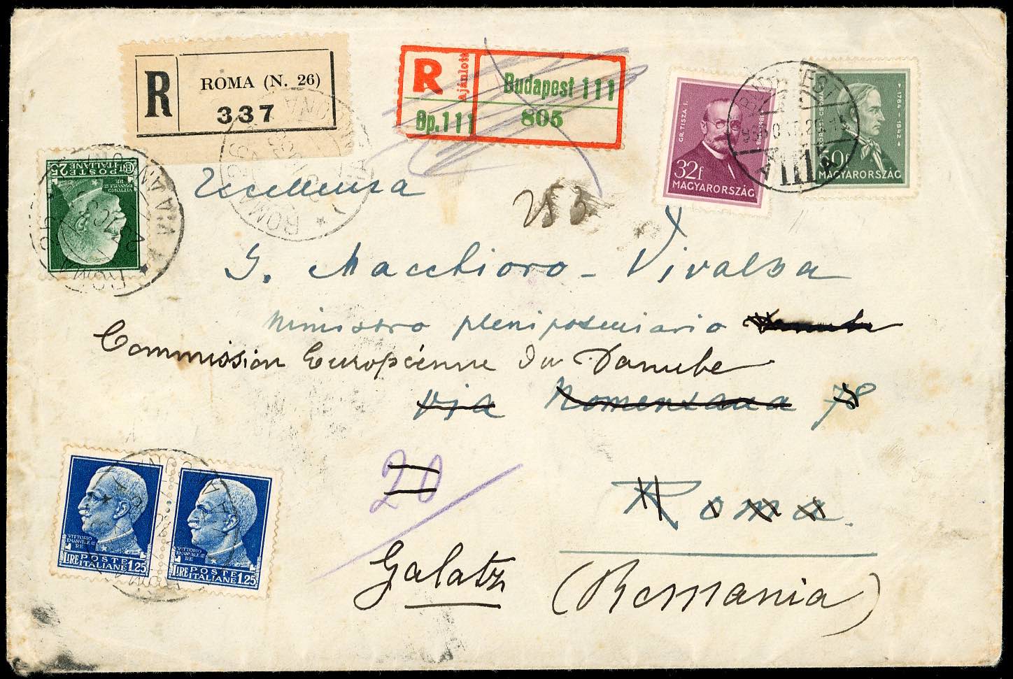 1936 - HUNGARY/ITALY/ROMANIA - Redirected with additional franking.