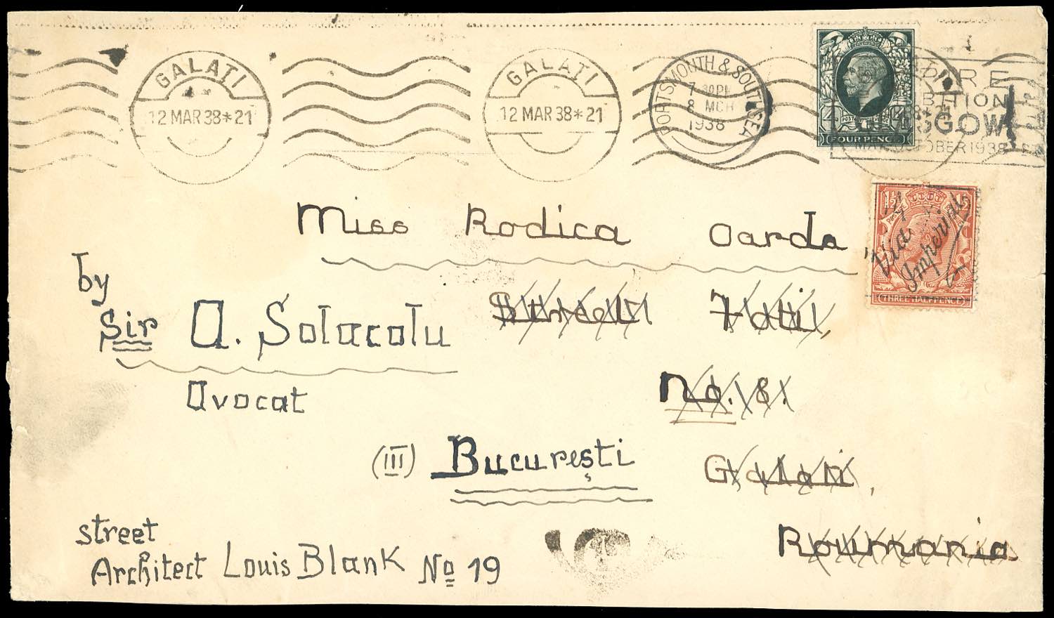 Lotto 157 - 1938 - GREAT BRITAIN/ROMANIA - Redirected with additional ...