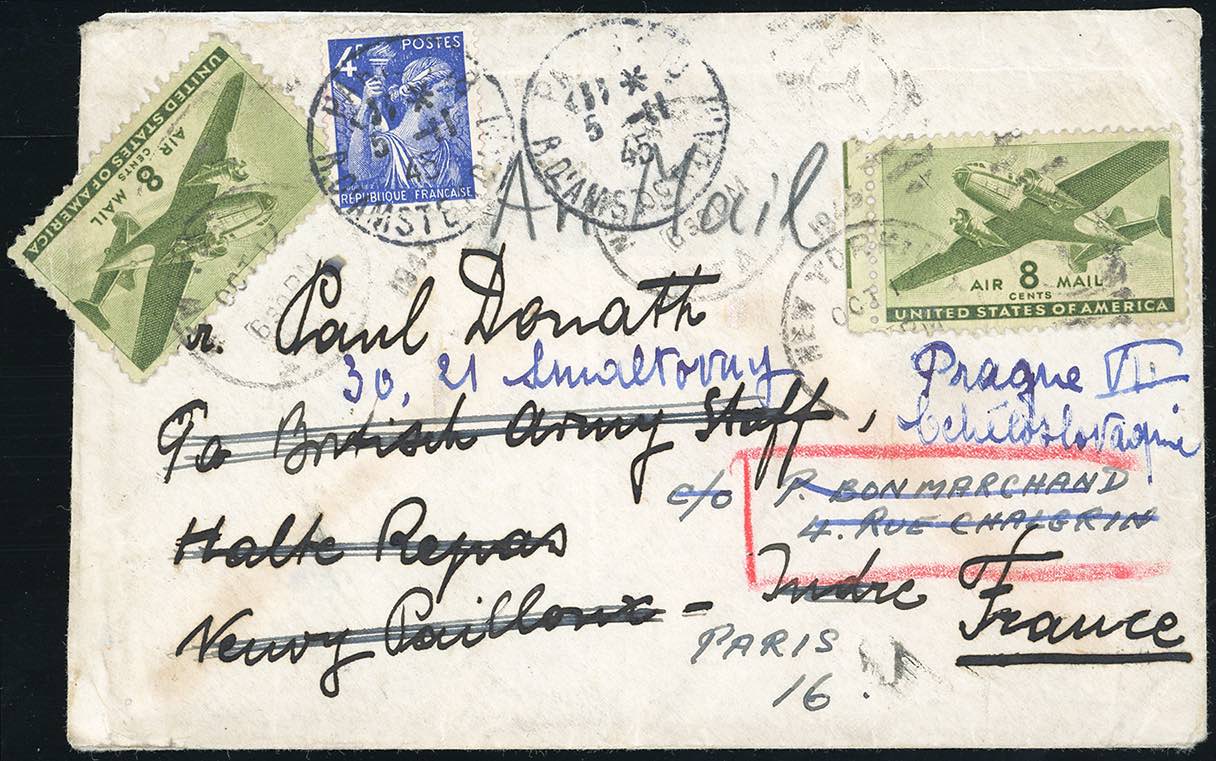 1945 - UNITED STATES OF AMERICA/FRANCE/CZECH REPUBLIC- Redirected with additional franking.