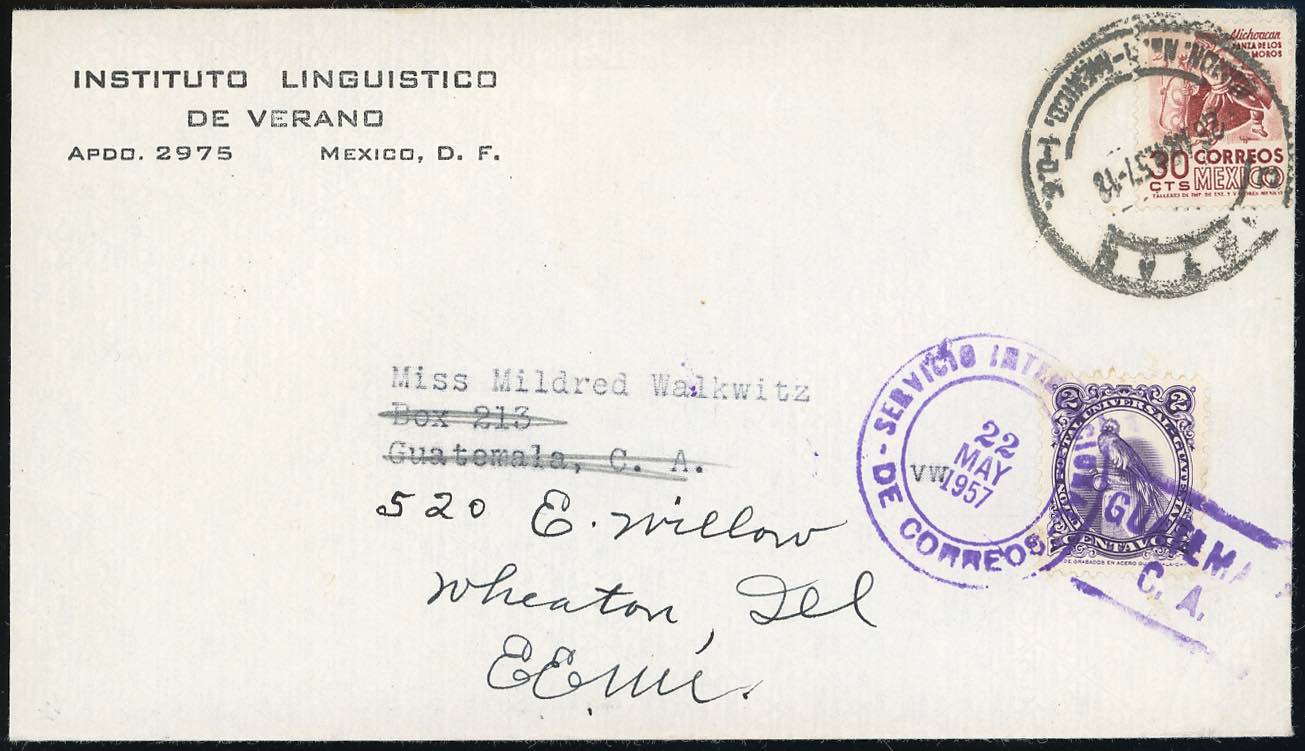 1957 - MEXICO/GUATEMALA - Redirected with additional franking.