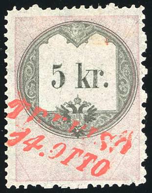 Lotto 378 - TREVISO, SI rosso non catalogato - 5 Kr. marca per lettere ...