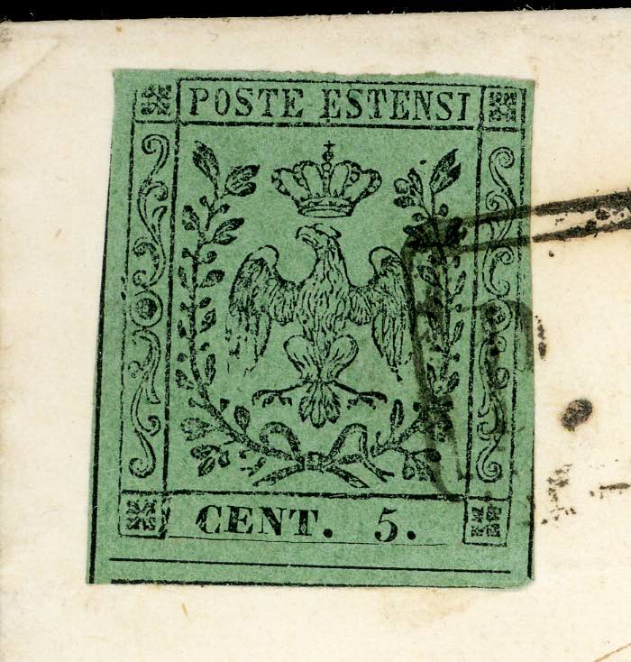 S.FELICE, PD punti 13 - 5 cent. (7), perfetto, su sovracoperta di lettera per Concordia, bollo in transito di Modena del 5/1857.