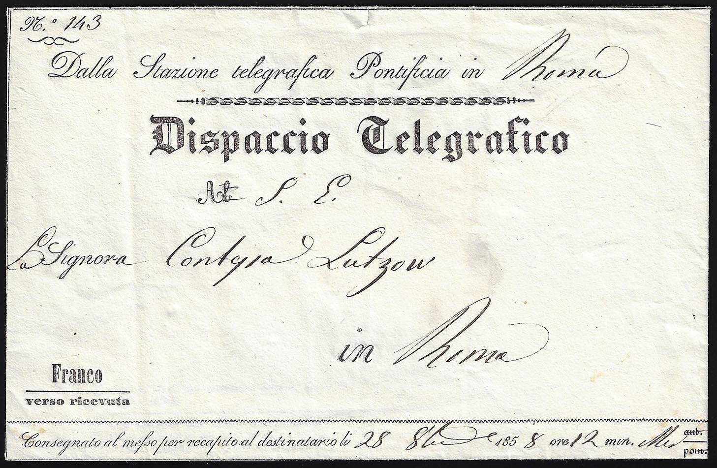 Lotto 592 - 1858 - Busta per dispaccio telegrafico da Roma 28/10/1858 ...