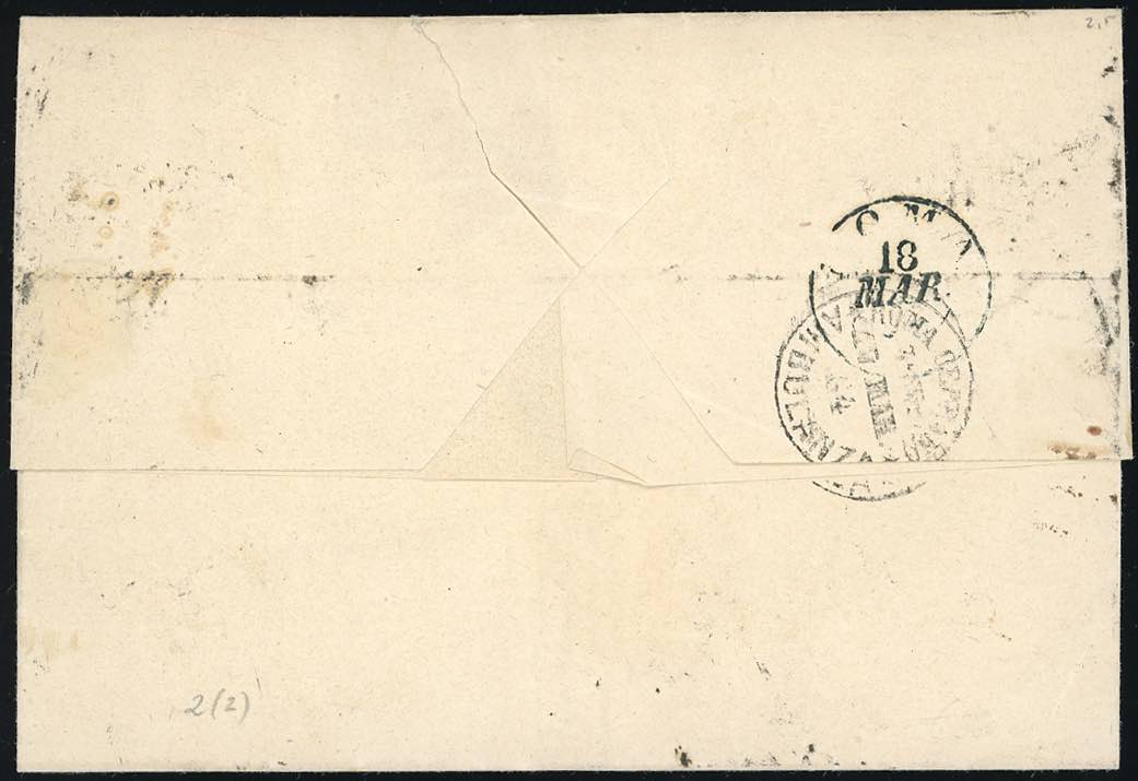 1864 - 1 baj verde scuro, I composizione (2A), coppia orizzontale con interspazio di gruppo, perfetta, su sovracoperta di lettera da ... Leggi tutto