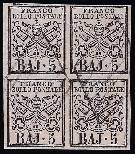 Lotto 632 - 1852 - 5 baj rosa chiaro (6), blocco di quattro il primo ...