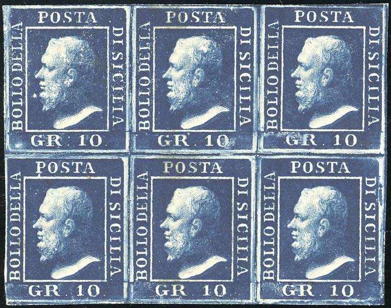 Lotto 878 - 1859 - 10 grana azzurro cupo (12), blocco di sei, nuovo, ...