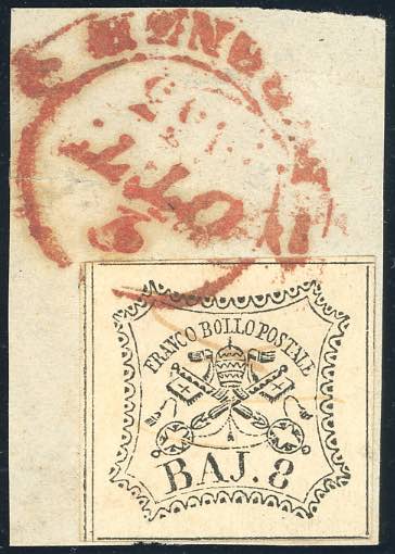 FIRENZE, cerchio a banderuola rosso - 8 baj bianco (Pontificio), perfetto, usato presumibilmente in arrivo con il bollo Toscano. ... Leggi tutto